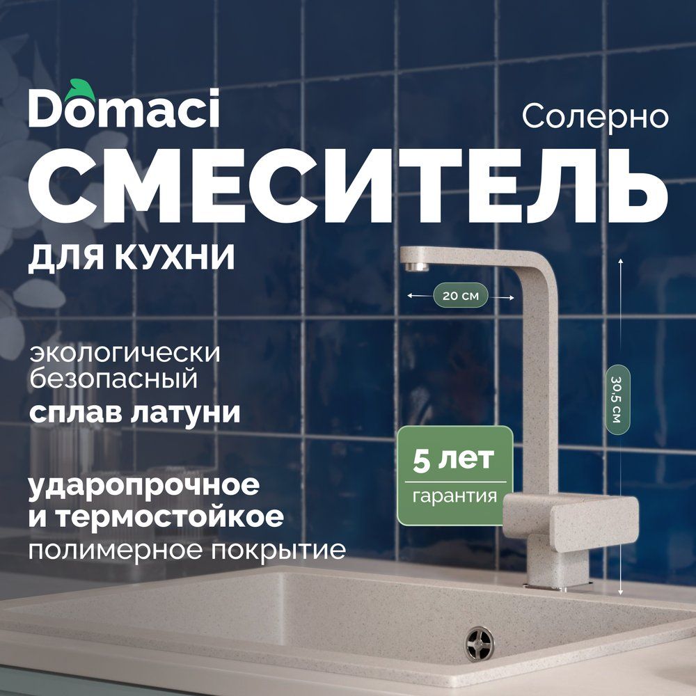 Смеситель для кухни Domaci Солерно DC-3014 барит — это великолепное сочетание современного дизайна и функциональности. Изготовленный из прочной латунной основы, он обеспечивает долговечность и устойчивость к износу. С его керамическим картриджем на основе инновационных технологий, вы получите плавное и бесшумное управление потоком воды. Матовая поверхность не только придаёт элегантный вид, но и упрощает уход за изделием, предотвращая появление водяных пятен и отпечатков пальцев.