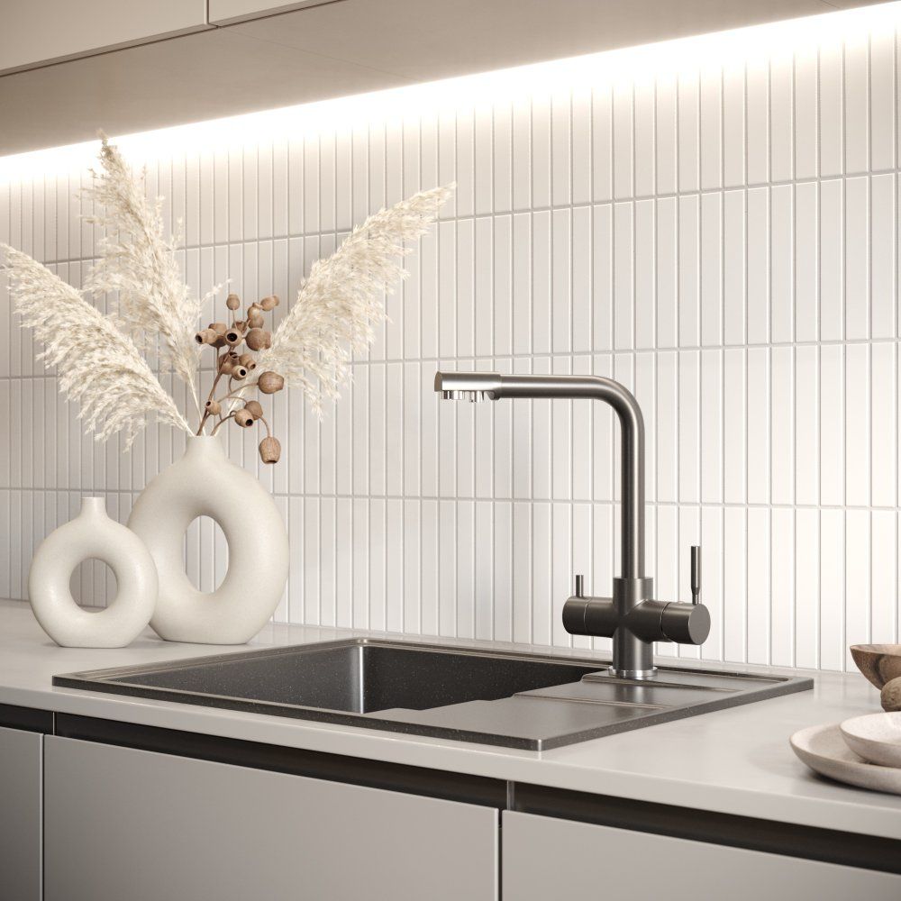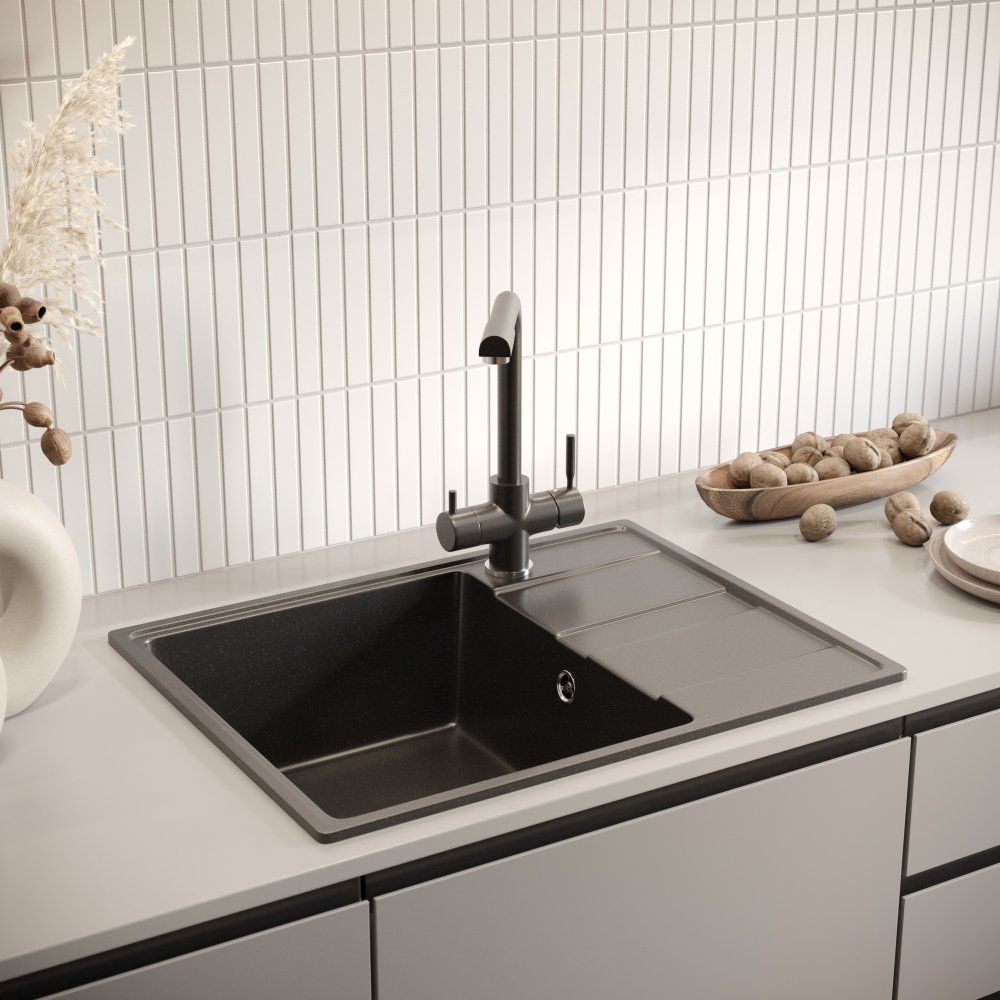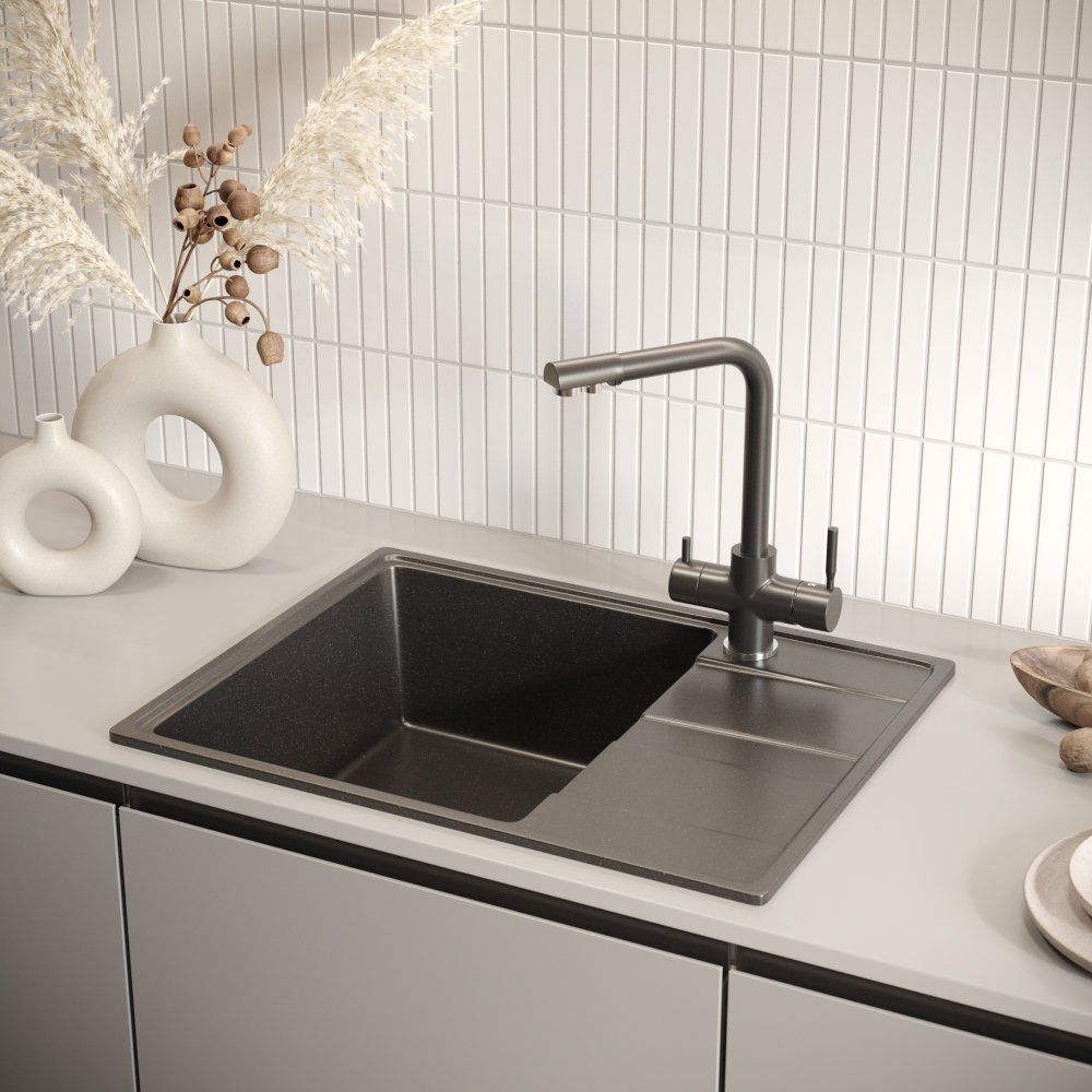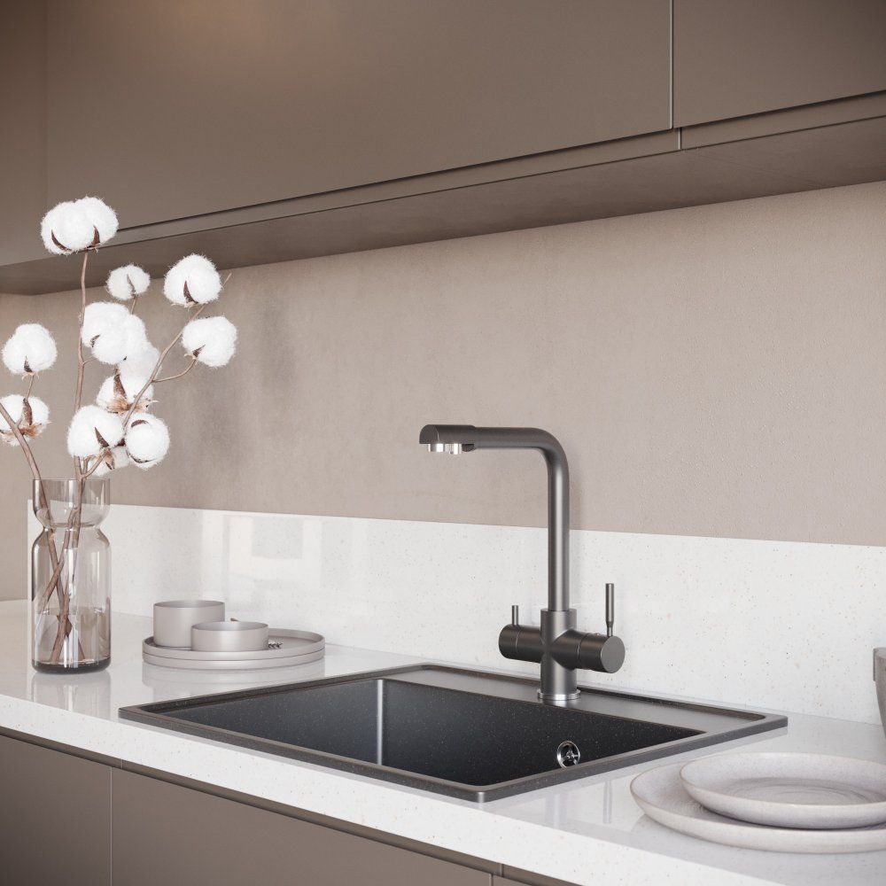- Практичность: совмещенный излив для фильтрованной воды экономит пространство и время.