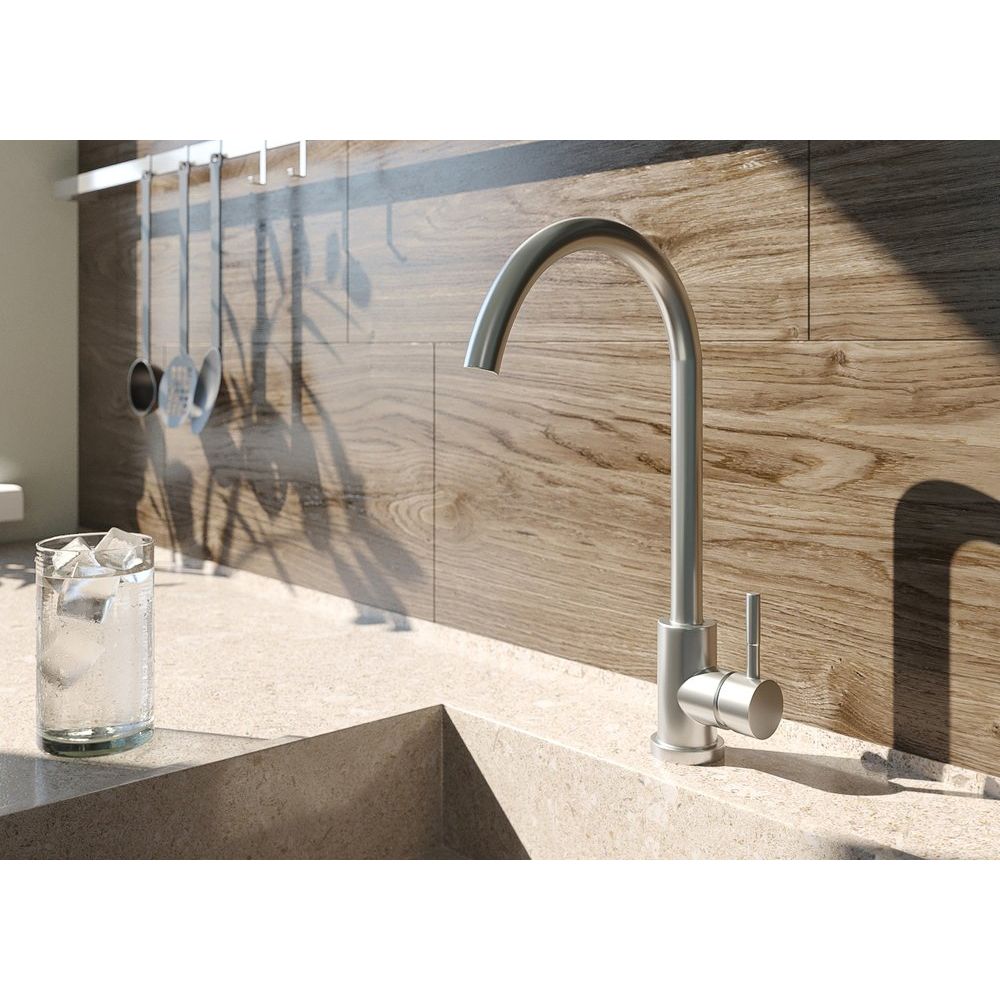 Смеситель Dorff Logic D3000000 изготовлен из нержавеющей стали и имеет высоту излива 25 см с длиной 19 см, что позволяет его использовать как для мытья посуды, так и для наполнения высоких емкостей. Керамический картридж диаметром 35 мм гарантирует долговечность и плавность работы. Матовая поверхность не только эстетична, но и практична, минимально показывая следы от воды и пальцев. Он оснащен аэратором, обеспечивающим мягкость потока, а также комплектуется гибкой подводкой и креплениями для быстрой и надежной установки. Произведено в России с гарантией на 5 лет.