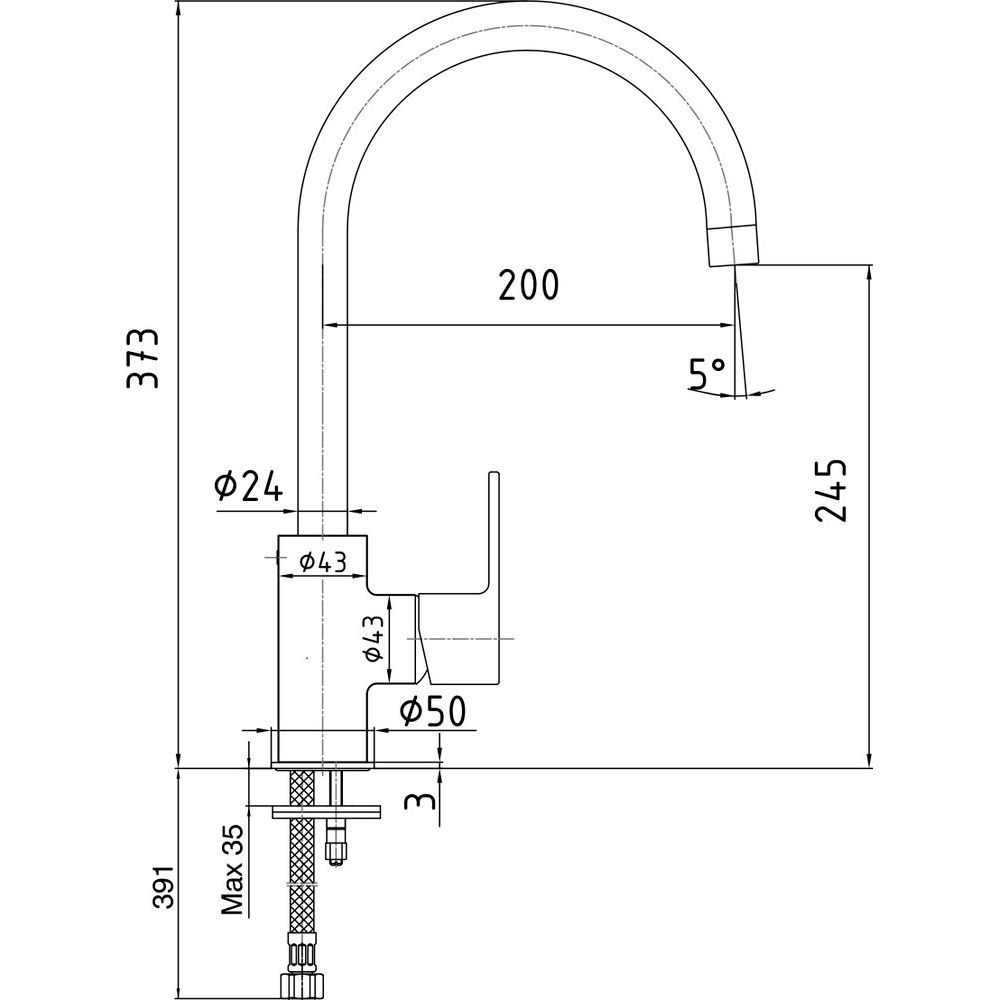 Смеситель высотой излива 24.5 см и длиной 20 см. Укомплектован керамическим картриджем и глянцевой поверхностью, дополнительно оснащен аэратором, гибкой подводкой и креплениями. Изделие производится в Турции и имеет гарантию на 5 лет.