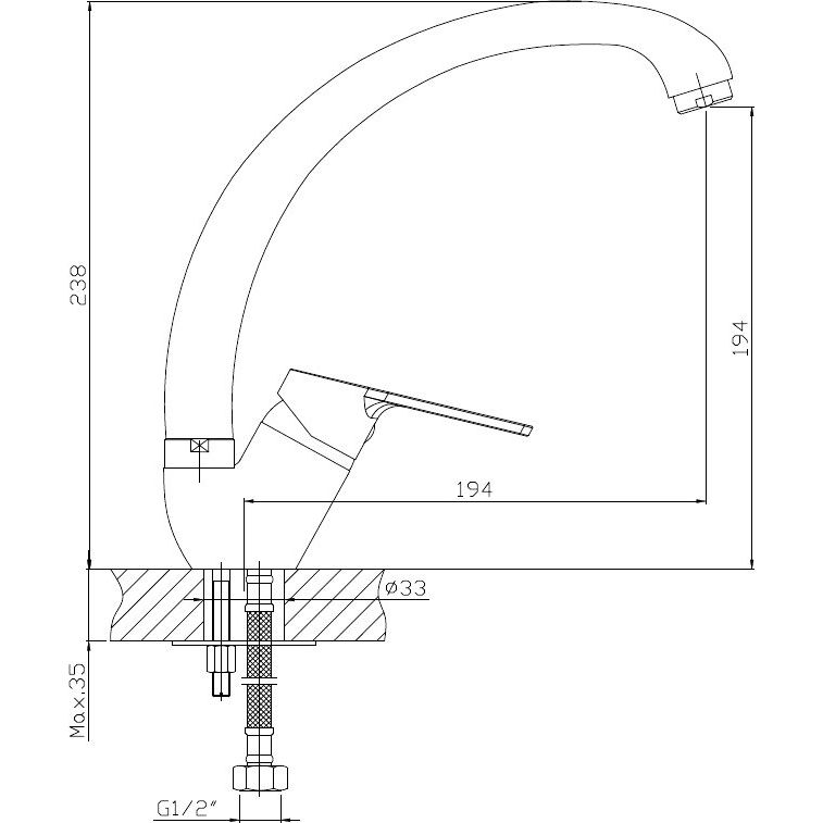 Смеситель имеет высоту и длину излива 19.4 см, что обеспечивает комфортный уровень для работы с посудой и продуктами. Керамический картридж не только повышает надежность изделия, но и способствует существенной экономии воды. Гладкая глянцевая поверхность легко очищается и выглядит эстетично даже через многие годы использования.