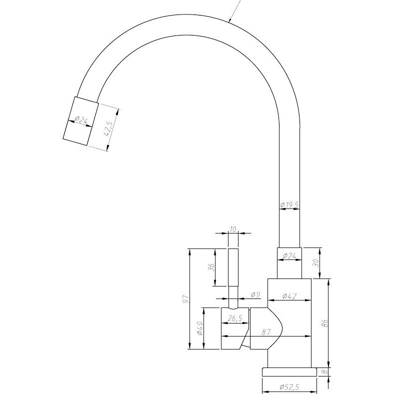 Смеситель выполнен из нержавеющей стали с матовой поверхностью, что придаёт ему стильный внешний вид и обеспечивает стойкость к коррозии. Керамический картридж, включенный в конструкцию, гарантирует долговечность и плавность хода. Гибкий излив длиной 23 см позволяет свободно направлять поток воды, обеспечивая максимальный комфорт при использовании.