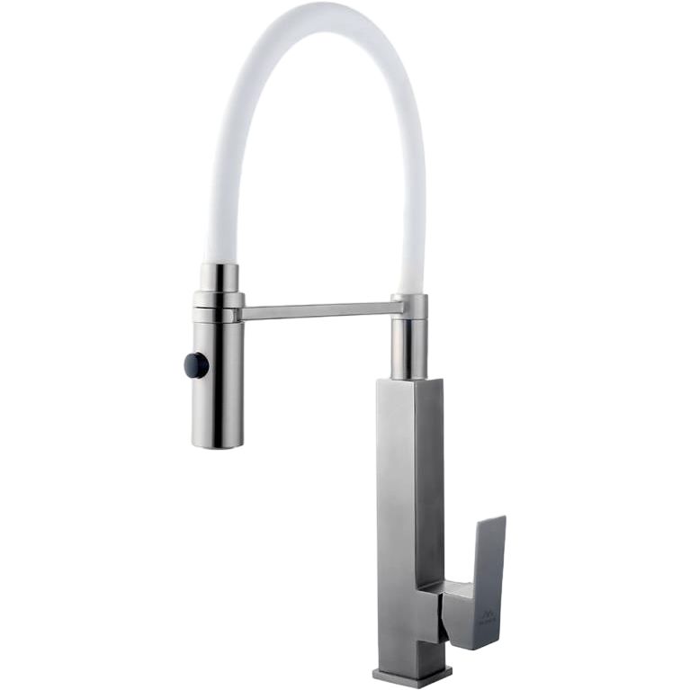 Представляем вашему вниманию смеситель для кухни Fashun A54102-8 сатин, белый — идеальное сочетание стиля и функциональности для вашей кухни. Данная модель выполнена из нержавеющей стали и высококачественного силикона, что обеспечивает долговечность и устойчивость к износу. Гибкий излив и режим «душ» позволяют легко справляться с любыми задачами на кухне, будь то мытьё посуды или ополаскивание овощей. Изделие дополнено керамическим картриджем, обеспечивающим мягкость и плавность регулировки воды, а матовая поверхность придаёт гармоничный вид любому интерьеру.