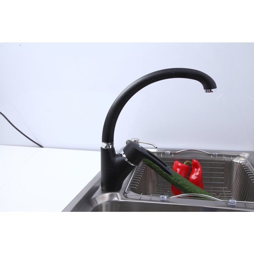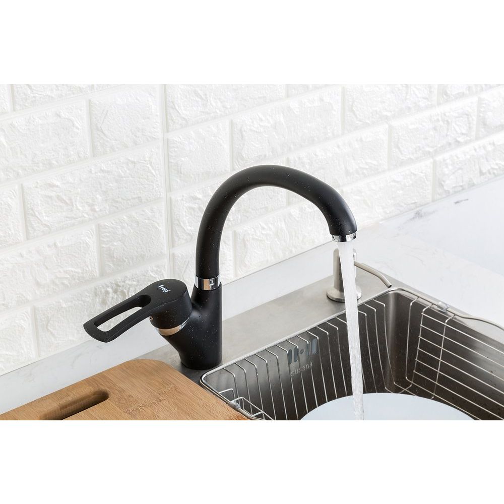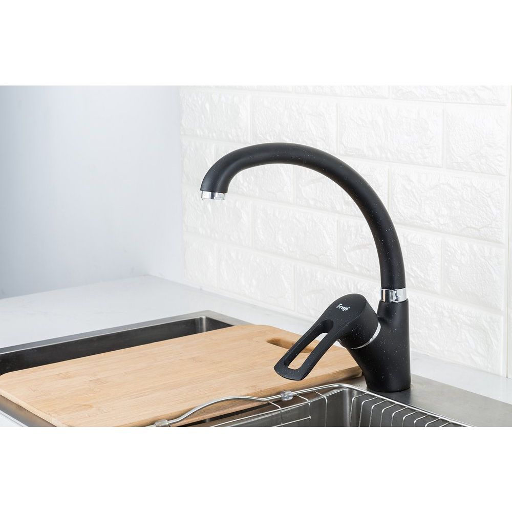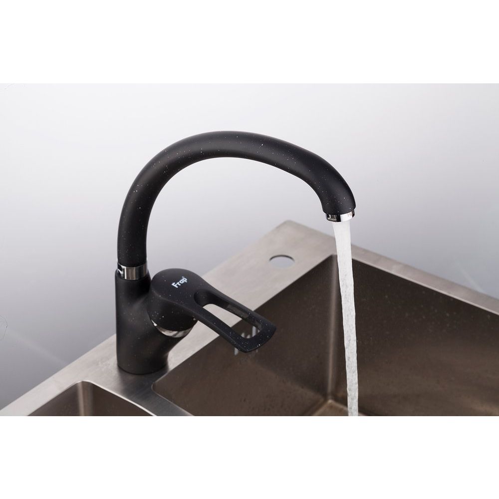 Смеситель для кухни Frap F4166-7 станет стильным дополнением вашей кухни благодаря матовой черной поверхности и современному дизайну. Созданный из латуни, этот смеситель обеспечивает долговечность и надежность на долгие годы. Он отличается особенной функциональностью и удобством в использовании.