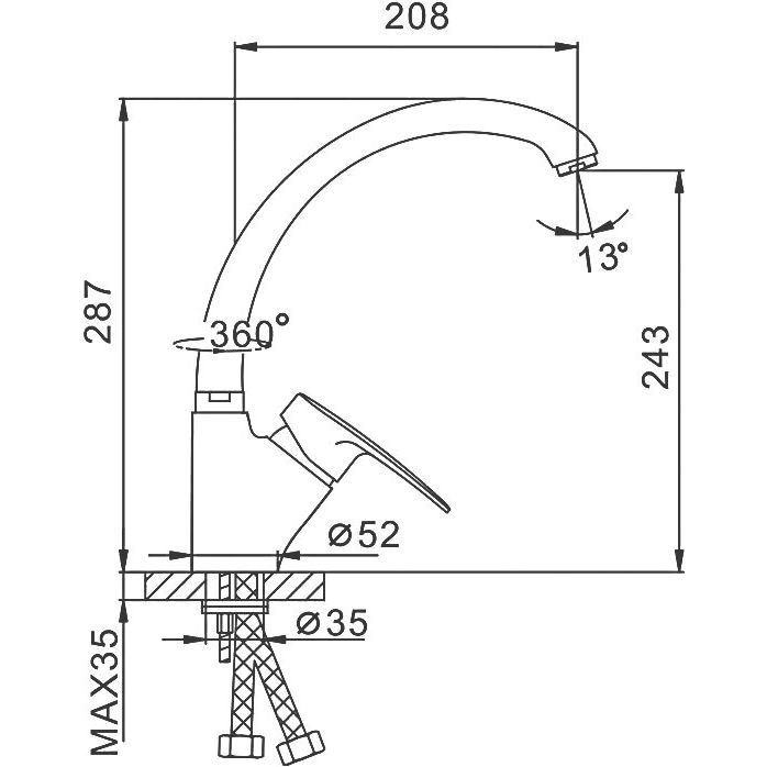 - Простота установки благодаря гибкой подводке и комплекту креплений.