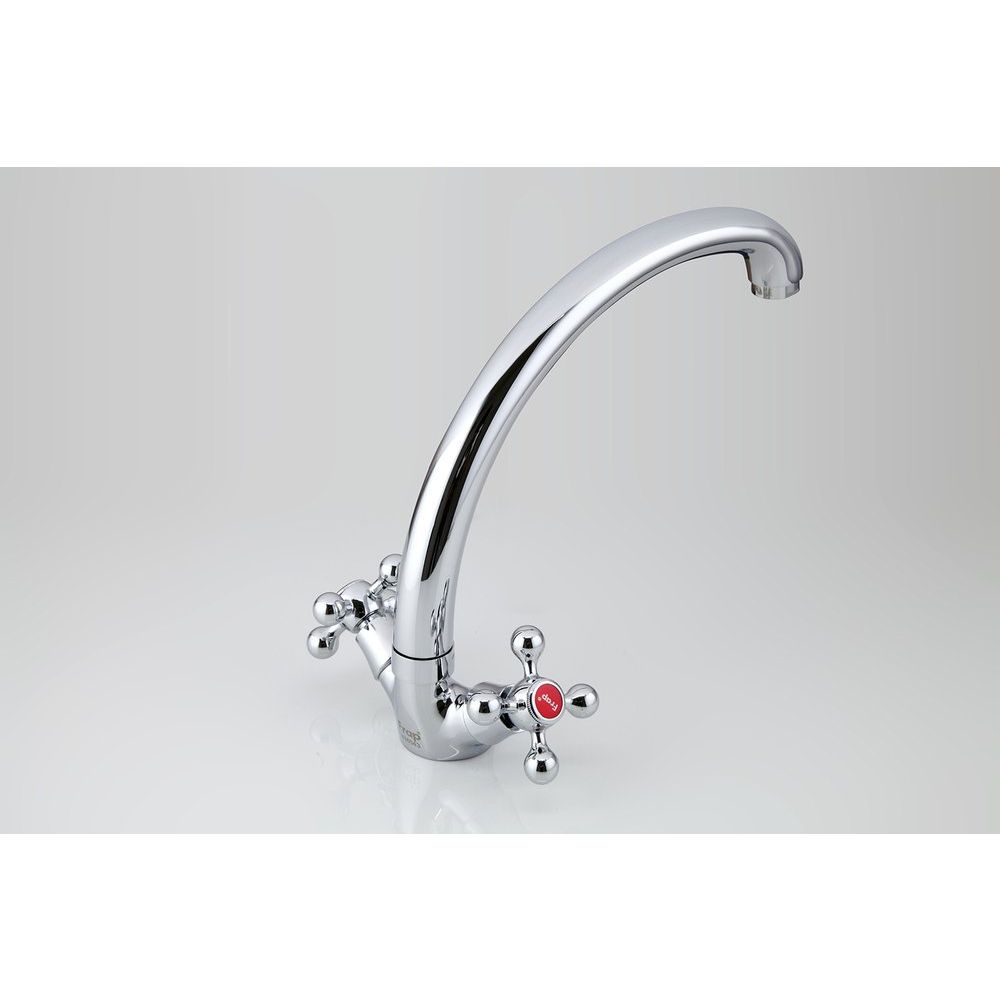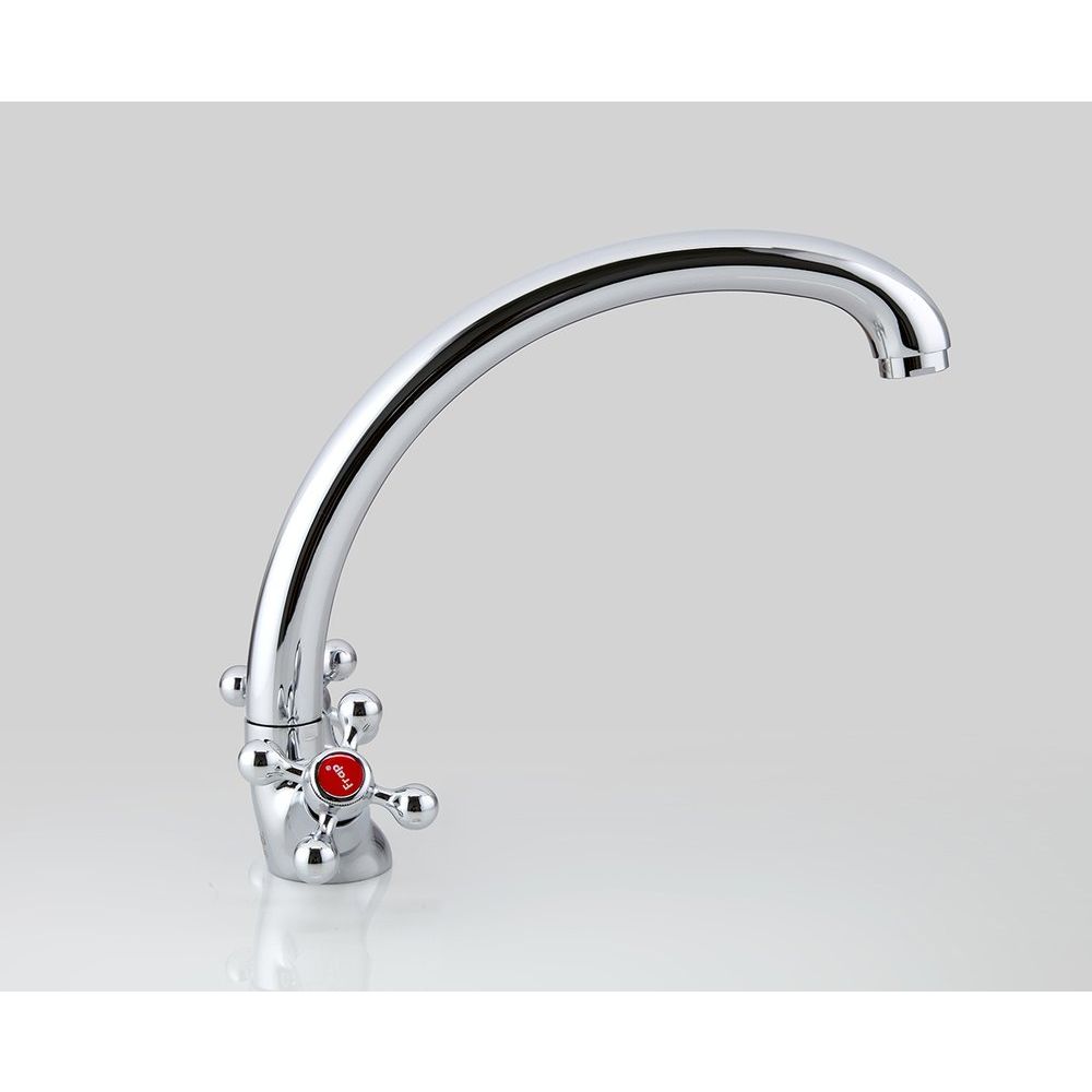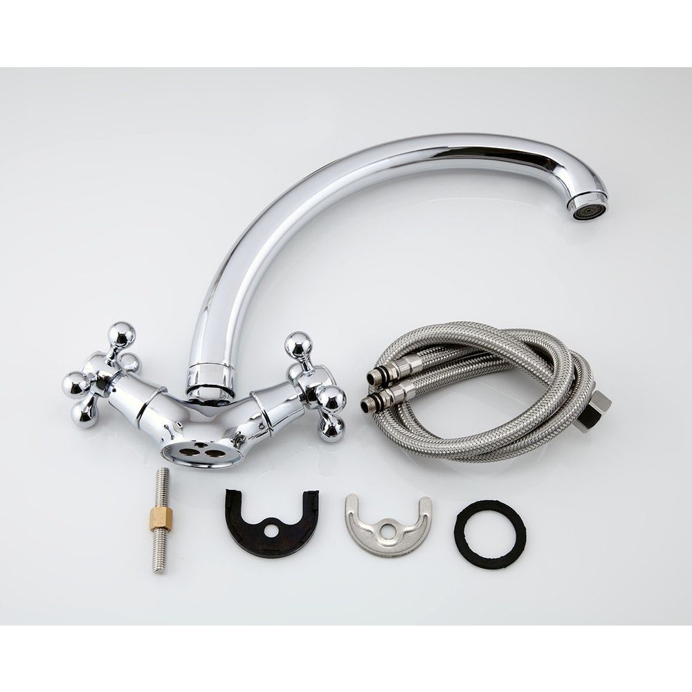 Этот кухонный смеситель выполнен из прочного сплава металлов и оснащён керамической кран-буксой для обеспечения долговечности. Высота излива составляет 19.1 см, а длина — 22.5 см, что подходит для большинства раковин. Глянцевая поверхность не только украшает ваш интерьер, но и проста в уходе. Аэратор помогает экономить воду, а гибкая подводка облегчает установку. На смеситель предоставляется гарантия на 1 год.