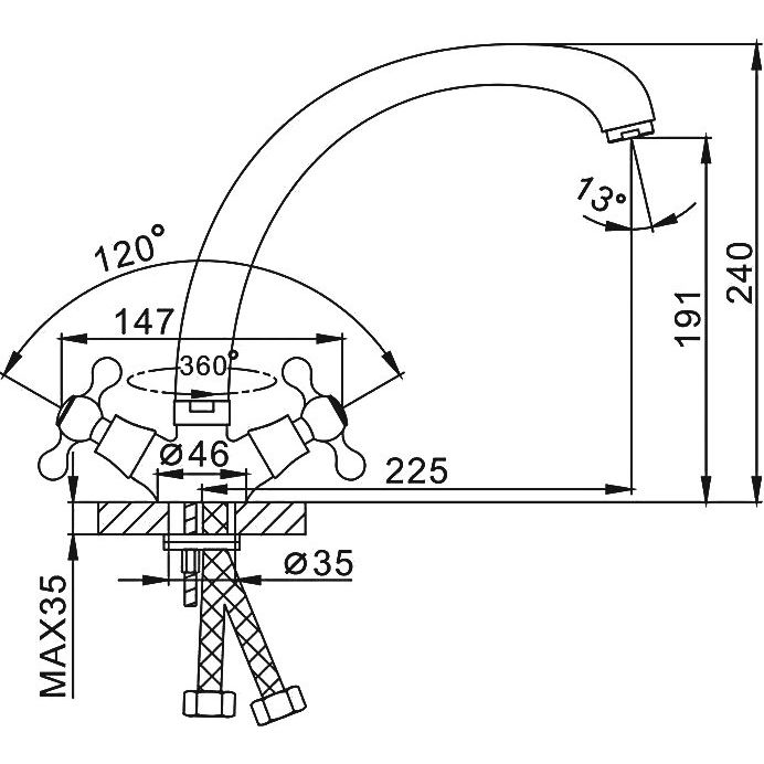 - Высота излива в 19.1 см и длина 22.5 см обеспечивают максимальное удобство при использовании.