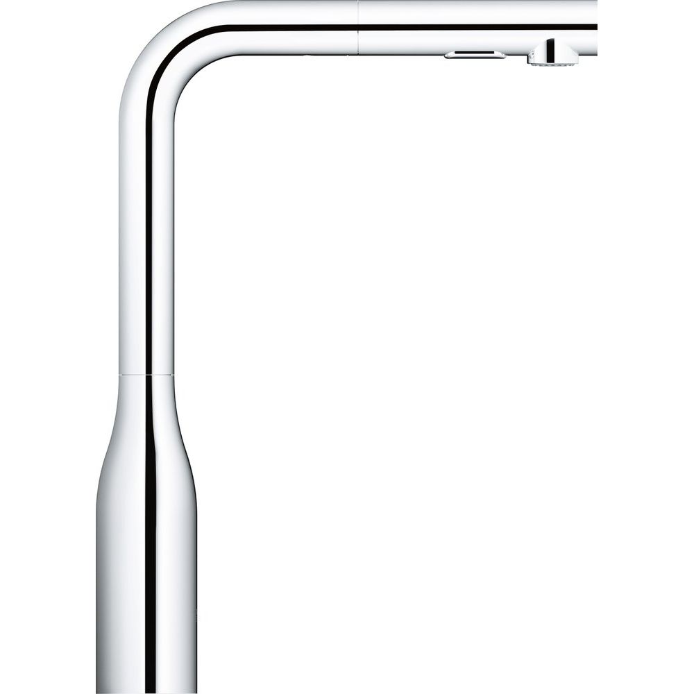 Смеситель Grohe Essence для кухни оснащен выдвижным изливом, который имеет дополнительный режим «душ», что делает его подходящим для эффективного ополаскивания. Высота излива составляет 31.5 см, а длина — 20.4 см, что обеспечивает удобный доступ к мойке. Встроенный керамический картридж и система экономии расхода воды гарантируют надежность и долговечность. Смеситель также имеет глянцевую поверхность и расходует до 11 литров воды в минуту. Для дополнительной безопасности предусмотрен ограничитель температуры и защита от обратного потока. Оснащен аэратором, гибкой подводкой и системой быстрого монтажа, что делает установку простой и удобной.