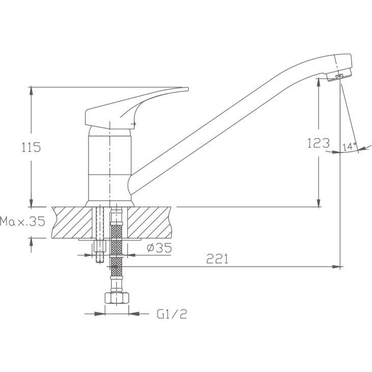 Смеситель Haiba HB13 HB4813 обладает высотой излива 12.3 см, что обеспечивает достаточный пространственный комфорт для работы на кухне. С длиной излива 22.1 см он идеально подходит для мойки различных размеров. Модель оснащена керамическим картриджем, который гарантирует плавное и надежное управление потоком воды. Установка облегчена за счет гибкой подводки и надежных креплений, которые входят в комплект.