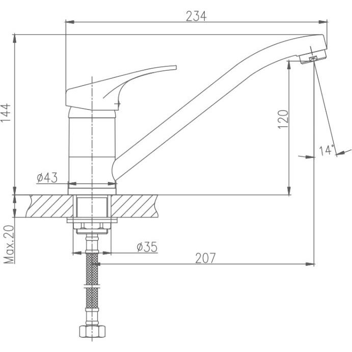 Смеситель выполнен из прочной латуни, отличается изящной формой с глянцевым хромированным покрытием, которое подчеркивает его современный стиль. Высота излива составляет 12 см, а длина — 20.7 см, что делает его удобным для мытья посуды любых размеров. Оснащение включает аэратор и гибкую подводку, что позволит сэкономить воду и упростит процесс установки.