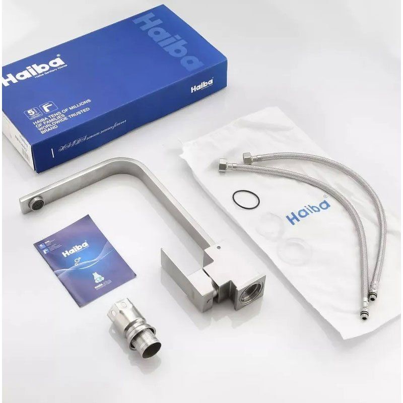 Смеситель Haiba HB803 подойдет для большинства кухонных интерьеров благодаря универсальному дизайну и цвету. Установка займет минимальное количество времени благодаря системе быстрого монтажа — в комплекте предусмотрены гибкие подводки. Гарантия качества на 5 лет подчеркивает долговечность и надежность изделия.