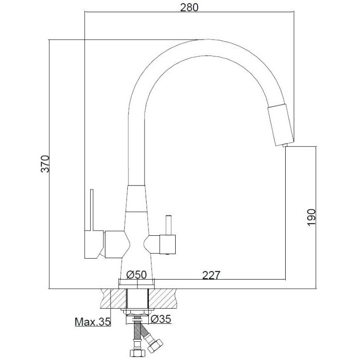 - Совмещенный излив для подачи фильтрованной питьевой воды.