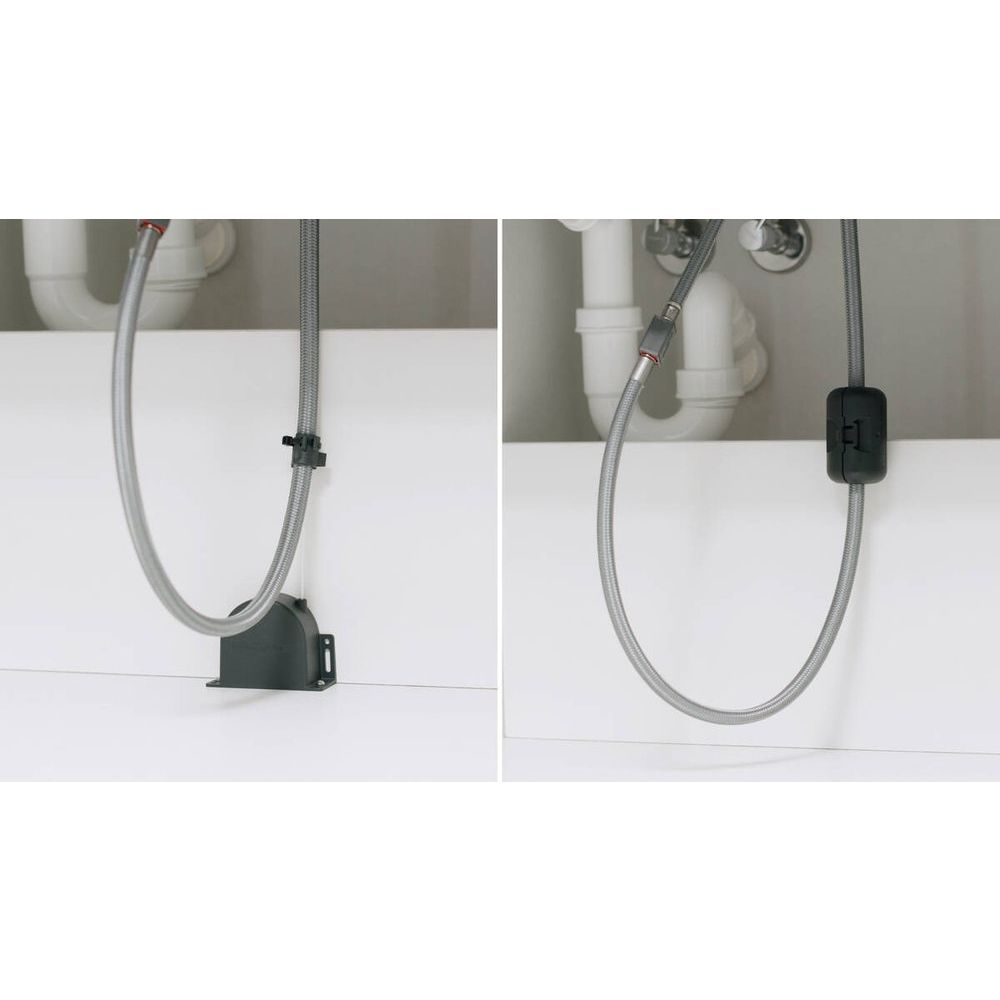 Система Quick-Connect позволяет быстро подключать душевой шланг, а встроенный клапан предотвратит обратное течение воды. Керамический картридж обеспечивает точное регулирование температуры и расхода воды до 8.2 литра в минуту при давлении 3 бара.