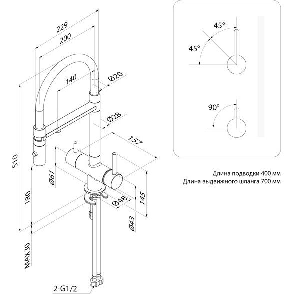 - Функциональность: две опции подачи воды для удобного ополаскивания посуды и наполнения емкостей.