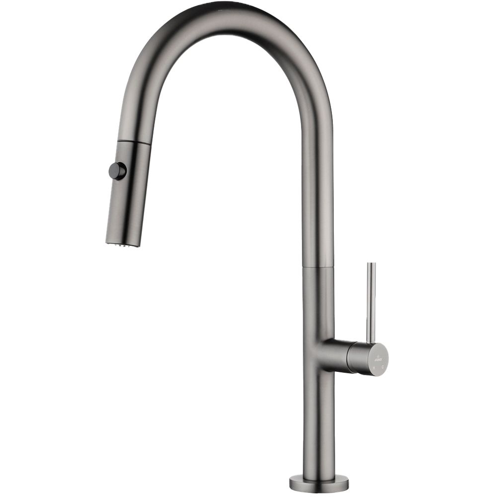 Смеситель для кухни Kaiser Merkur 26466-15 — это не просто бытовой предмет, а высокотехнологичное устройство, идеально сочетающее современный дизайн и превосходную функциональность. Выполненный в изысканном цвете вороненой стали, он станет стильным акцентом вашей кухни. Смеситель изготовлен из высококачественной латуни и оснащен износостойким покрытием, что гарантирует его долговечность и простоту в уходе. Гибкий и выдвижной излив обеспечивает непревзойденный комфорт в использовании, позволяя добраться до самых труднодоступных мест. Легкость управления достигается благодаря керамическому картриджу диаметром 35 мм, который не только обеспечивает герметичность, но и снижает уровень шума.
