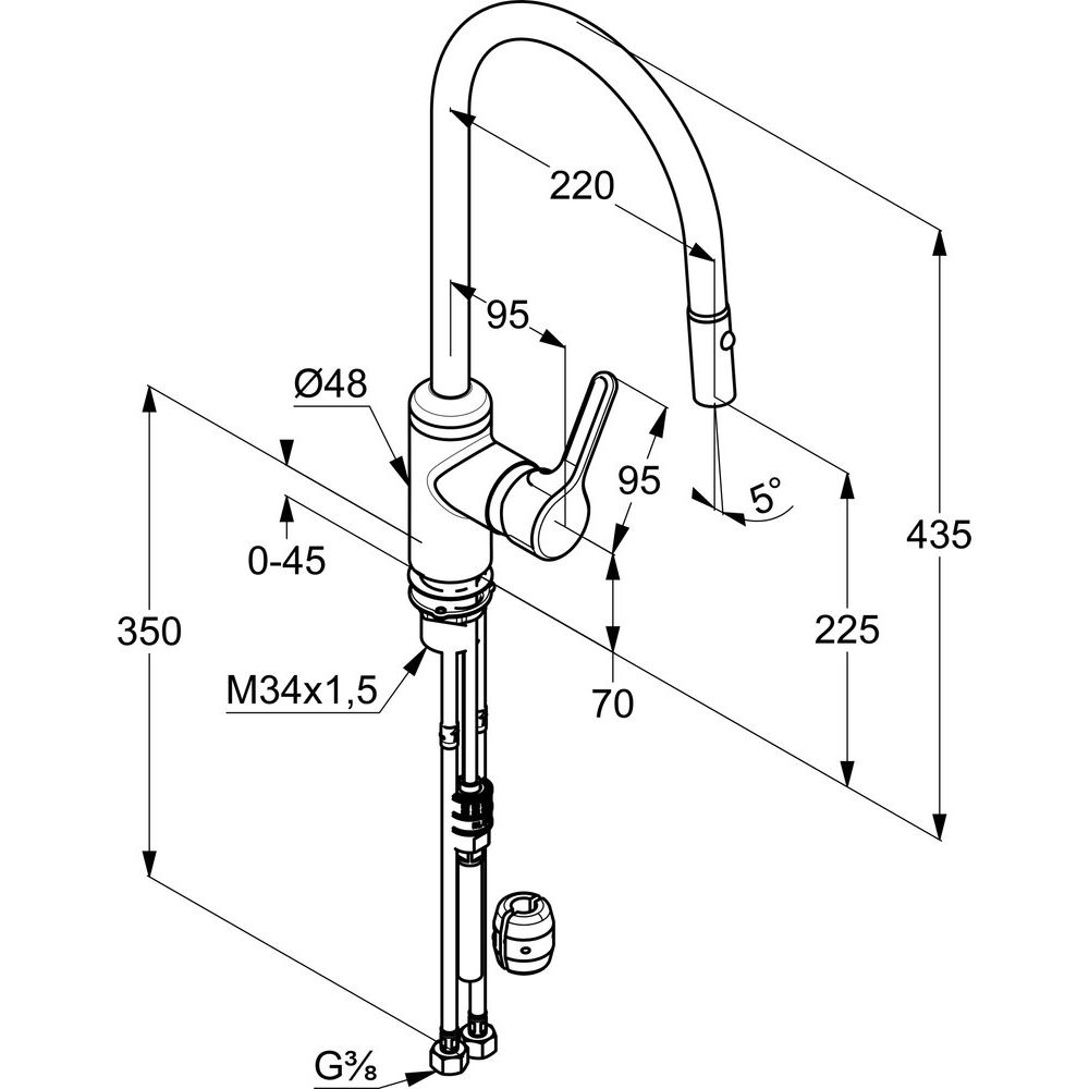Смеситель Kludi Bingo Star оснащен поворотным изливом длиной 22 см и высотой 22,5 см, что обеспечивает удобство при наполнении больших кастрюль. Встроенный аэратор гарантирует мягкую струю без разбрызгивания, а система гибкой подводки G 3/8 упрощает установку и подключение. Автоматическое переключение между режимами струй позволяет легко менять поток воды в зависимости от ваших нужд. Гарантия на изделие составляет 5 лет, что подчеркивает надежность и долговечность продукта.