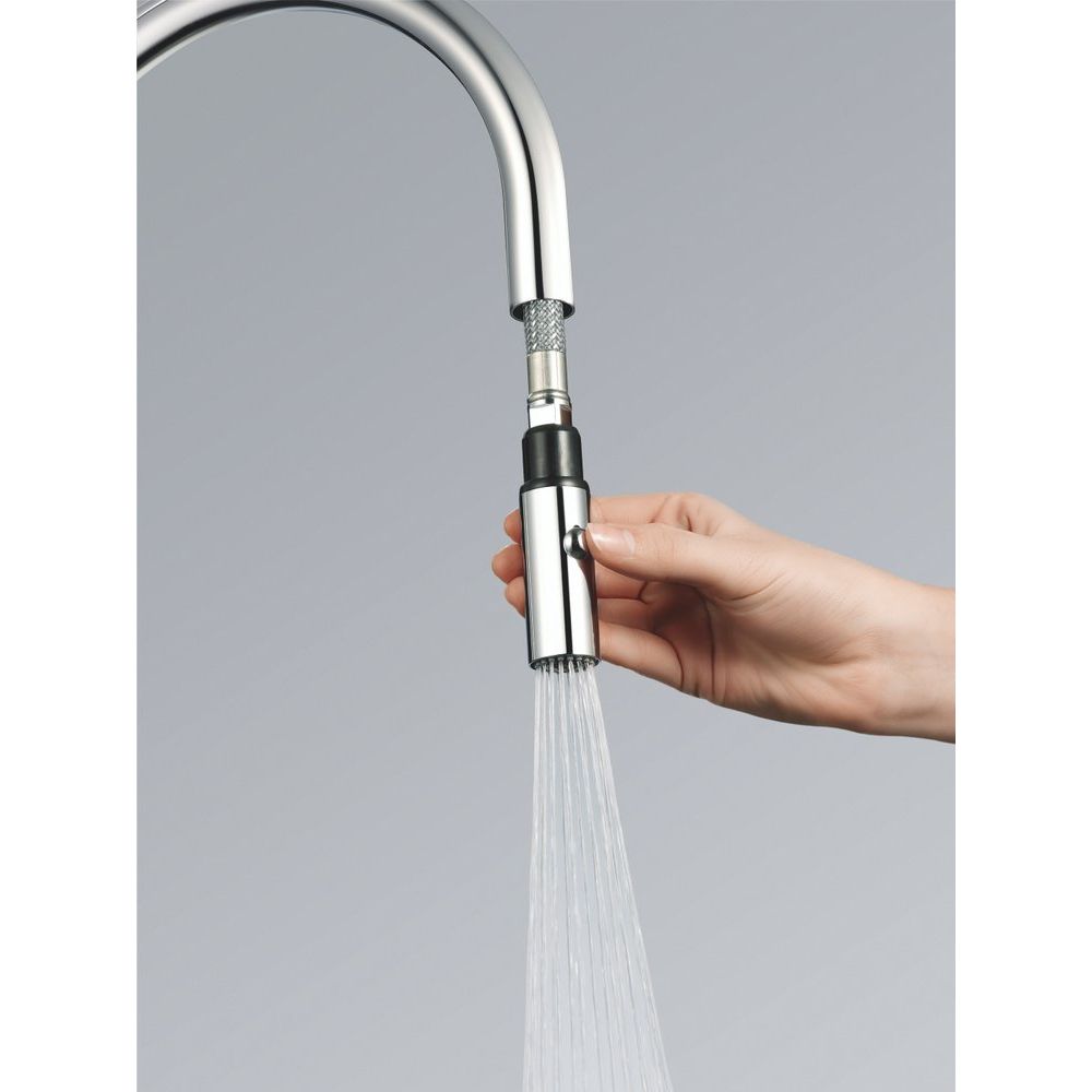 - Выдвижной душ, который облегчает ополаскивание различных кухонных изделий.