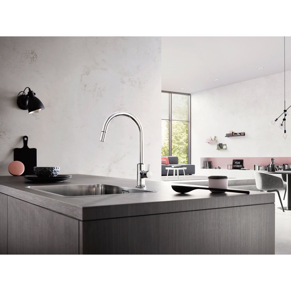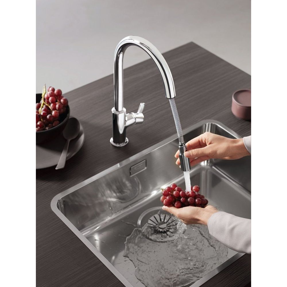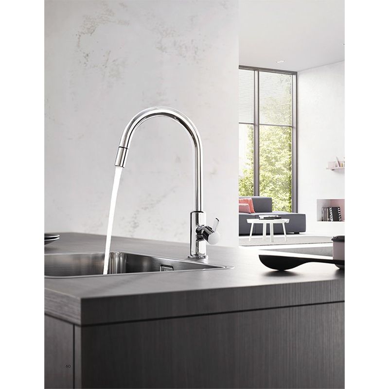 - Выдвижной излив с возможностью поворота на 230°, что значительно увеличивает радиус действия.