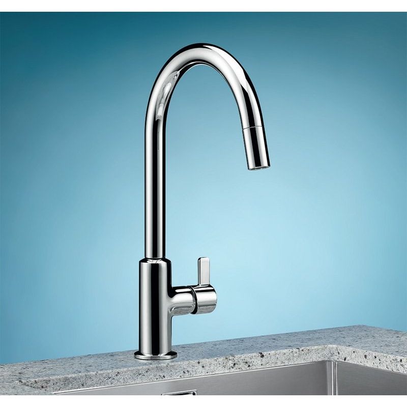 Смеситель изготовлен из высококачественной латуни, что гарантирует его долговечность и надежность. Высота излива составляет 22 см, а длина — 20,5 см, что делает его идеальным для мойки разного размера. Керамический картридж с ограничителем горячей воды защитит вас от ожогов и обеспечит долгий срок службы изделия. Расход воды ограничен на уровне 9 литров в минуту, а защита от обратного потока обеспечивает дополнительную безопасность. Устройство оснащено гибкой подводкой и имеет глянцевую поверхность, которая легко очищается.