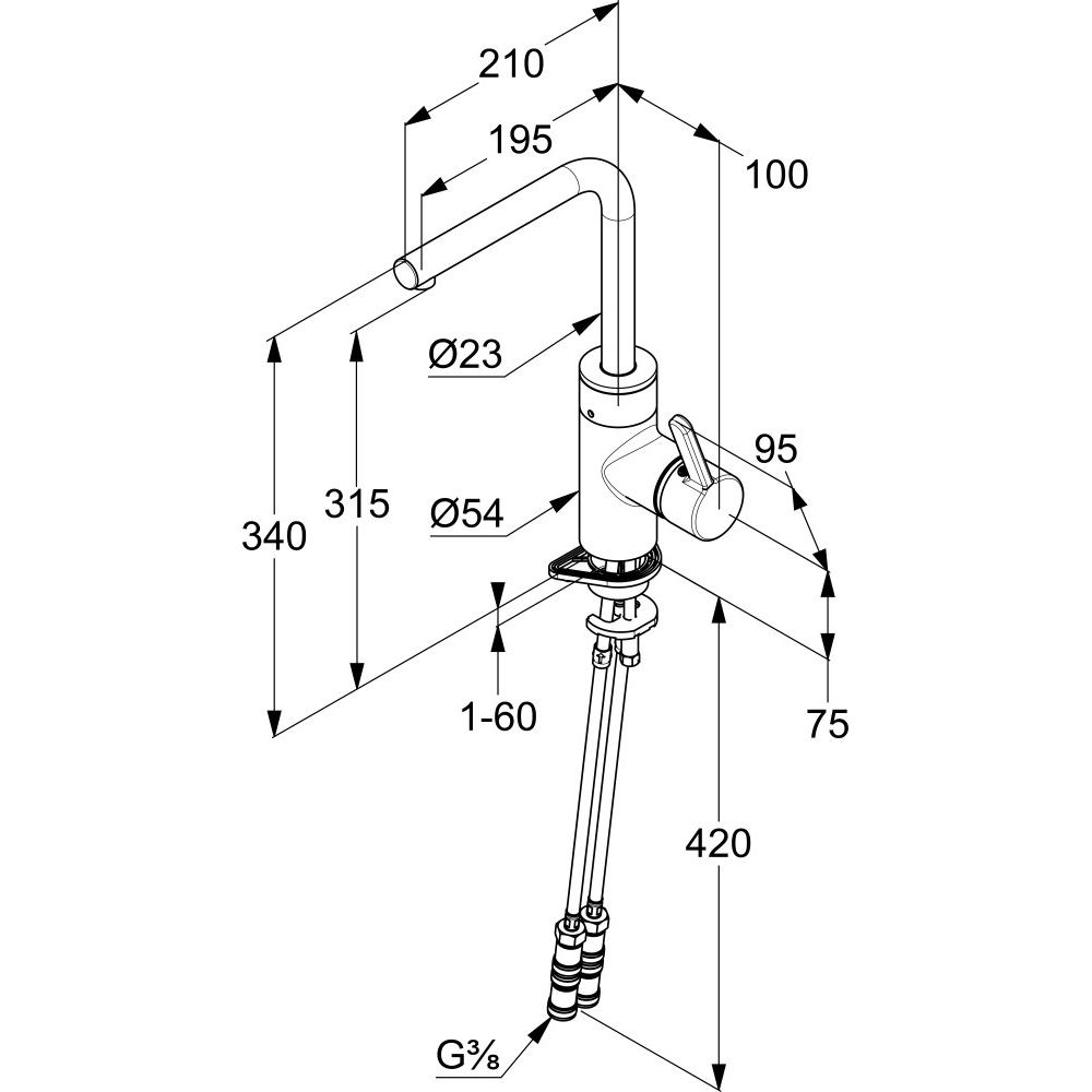 Смеситель для кухни Kludi E-go имеет высоту излива 31.5 см и длину 19.5 см, что делает его идеальным для различных кухонных задач. Материал корпуса — высококачественная латунь, обеспечивающая долгий срок службы и устойчивость к коррозии. Сенсорное управление позволяет ограничить расход воды до 5.0 л/мин при давлении 3 бара, а при ручном управлении — до 10.5 л/мин. Встроенный керамический картридж с ограничителем горячей воды гарантирует безопасность и удобство использования. В комплект входят аэратор Caché M16.5x1, гибкая подводка, и литиевая батарея CR-P2 6V.