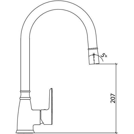 Смеситель имеет высоту излива 20.7 см и длину 20.5 см, что удобно для большинства кухонных раковин. Оснащен керамическим картриджем для легкости управления и аэратором для экономии воды. Гибкая подводка и крепления входят в комплект, обеспечивая легкость в установке. Произведено в России и подкреплено пятилетней гарантией, что свидетельствует о высоком качестве.