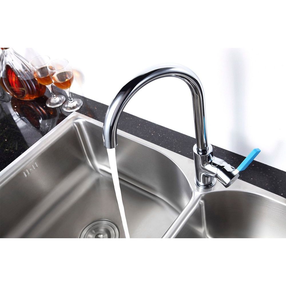 Смеситель выполнен из прочной латуни с глянцевой поверхностью, добавляющей блеска и прочности. Высота излива составляет 23.1 см, а длина – 23 см, что обеспечивает удобство при мытье посуды или наполнении крупных емкостей. Встроенный аэратор гарантирует бархатистую струю воды, а гибкая подводка облегчает процесс установки смесителя.