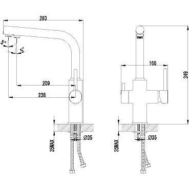 Смеситель выполнен из латуни с глянцевым хромированным покрытием, гарантирующим устойчивость к внешним воздействиям. Он оснащен двумя аэраторами: Neoperl Cascade для водопроводной воды и Neoperl Perlator для питьевой. Высота излива составляет 34 см, а длина — 23.8 см, что обеспечивает удобство эксплуатации. Внутренние керамические механизмы, такие как 35 мм керамический картридж и кран-букса с углом поворота 90°, отвечают за надежность и простоту управления. Гарантия на изделие составляет 4 года, что подтверждает его качество и долговечность.
