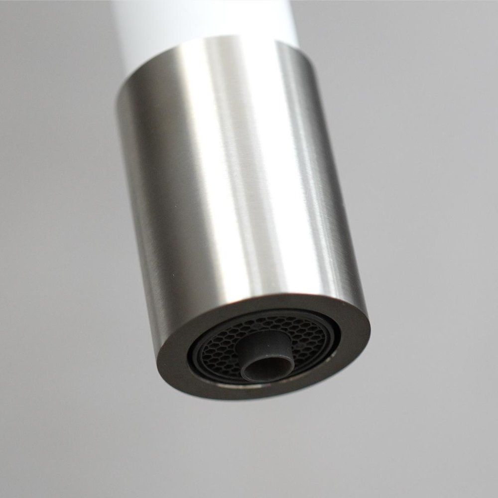 Смеситель для кухни Lemark Expert LM5083S-White с лёгкостью станет центром притяжения на вашей кухне благодаря стильному дизайну и высокой функциональности. Этот смеситель не только улучшит вашу повседневную жизнь, но и подарит новый уровень удобства в использовании воды. Излив из гибкого силикона позволяет легко направлять поток воды в нужное место, а комбинированный аэратор Neoperl создаёт идеальное соотношение воздуха и воды для мягкого струи. Смеситель предназначен для подачи как водопроводной, так и фильтрованной воды благодаря переходнику ¼" для подключения питьевого фильтра.