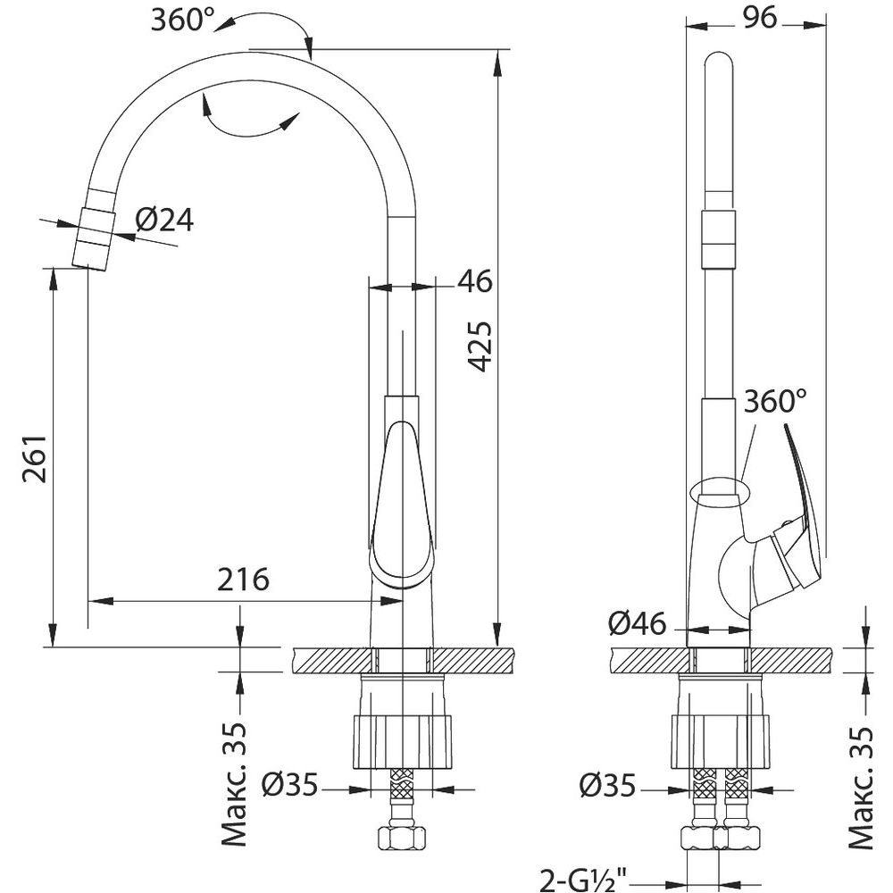- Гибкий излив обеспечивает удобство в использовании даже в самых сложных условиях.
