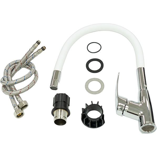 - Гибкий излив позволяет легко направлять поток воды в нужное место, что делает использование смесителя максимально удобным.