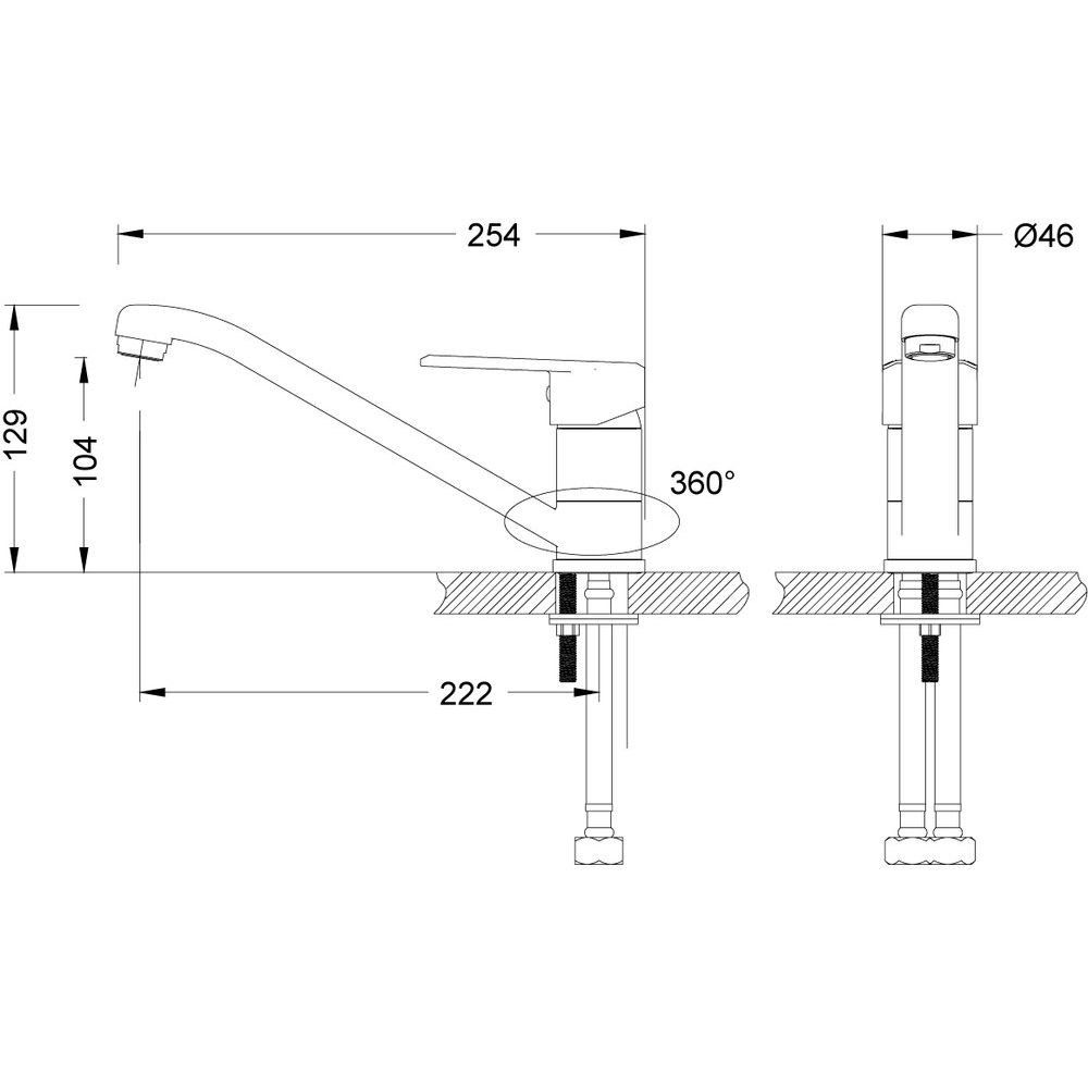 Изготовленный из высококачественной латуни, смеситель имеет глянцевую поверхность, которая добавляет элегантности вашей кухне. Высота излива составляет 10.4 см, а длина — 22.2 см, что делает смеситель идеальным для большинства кухонных задач. Смеситель оснащен керамическим картриджем для долговечности и простоты обслуживания. Подключение к системе водоснабжения осуществляется с помощью гибкой подводки 1/2 дюйма, длиной 50 см. Производитель предоставляет гарантию на 4 года, что подтверждает уверенность в высоком качестве своей продукции.