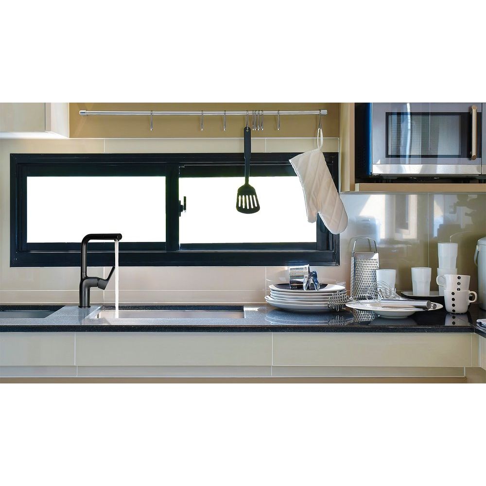- Высокий излив в 27.4 см идеально подходит для работы с крупной посудой.