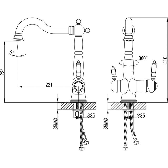 - Удобная подача питьевой воды: благодаря совмещенному изливу отсутствует необходимость в дополнительных кранах.