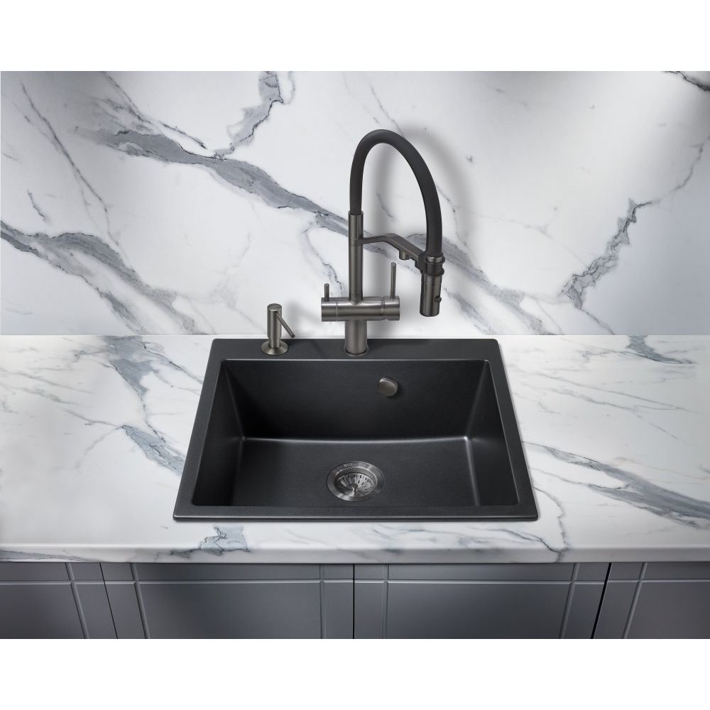 Смеситель изготовлен из высококачественной латуни и имеет надежный керамический картридж, гарантирующий долговечность. Высота излива составляет 21.3 см, а длина — 22.05 см, что обеспечивает комфортный доступ ко всем зонам мойки. Оснащен аэратором для экономичного расхода воды и гибкой подводкой для легкости установки. Матовая поверхность не только эстетична, но и мало подвержена образованию отпечатков, что облегчает уход за изделием.