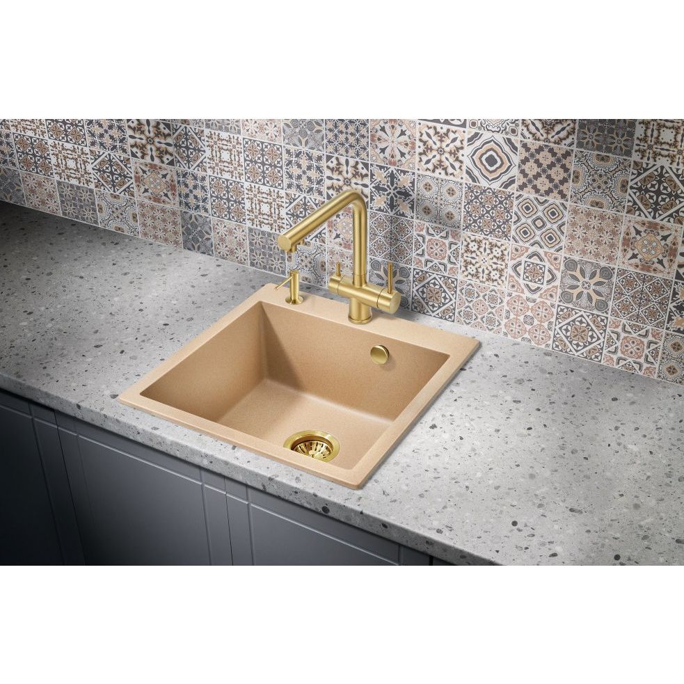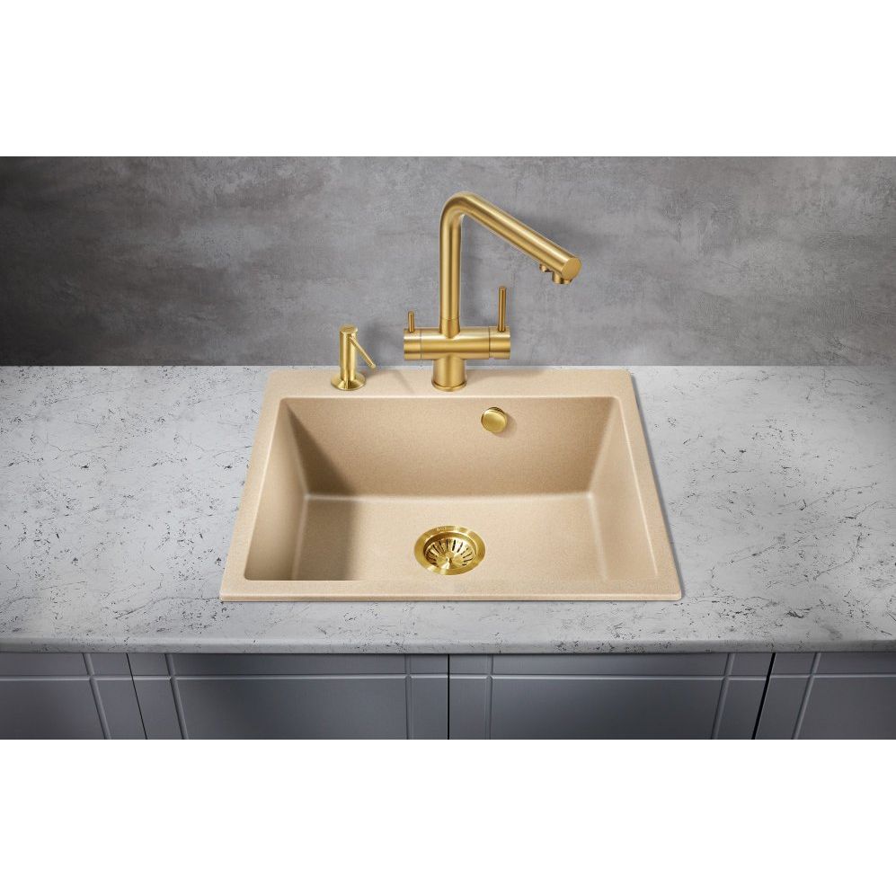 - Высокое качество материала — нержавеющая сталь с PVD покрытием, что делает смеситель устойчивым к царапинам и коррозии.