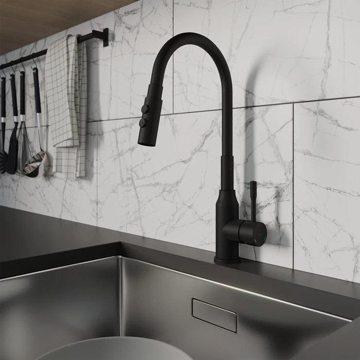 Смеситель для кухни Milardo Meal M01BL2FM05 в стильном черном исполнении с гибким изливом станет незаменимым помощником в любой современной кухне. Благодаря уникальному дизайну и инновационным решениям, этот смеситель не только функционален, но и придаст вашему интерьеру особую нотку элегантности. Гибкий излив позволяет легко менять направление потока воды, расширяя рабочую зону и обеспечивая максимальное удобство в пользовании. Внешняя оболочка из термостойкого силикона защищает от ожогов при подаче горячей воды и сохраняет форму изделия, даже при сильном напоре, благодаря усиленной стальной конструкции внутри. Два режима работы – для обычной подачи воды и «душ» для ополаскивания – обеспечивают лёгкость в приготовлении пищи и мытье посуды.