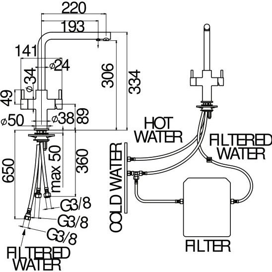 - Функция подачи фильтрованной воды через отдельный излив для удобства и здоровья.