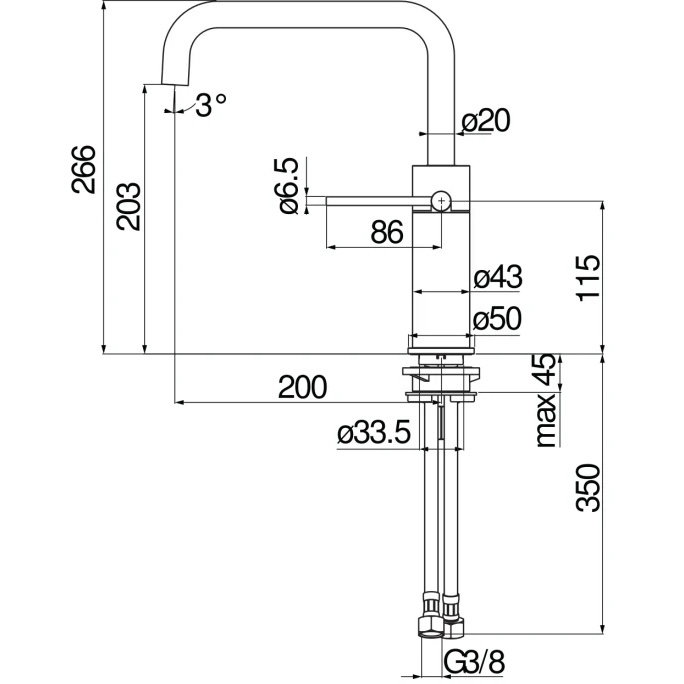 - Диаметр резьбы подводки (G): 3/8”