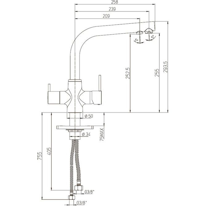 - Совмещённый излив для обычной и фильтрованной воды.