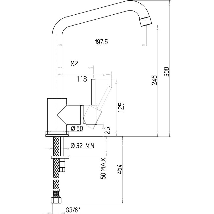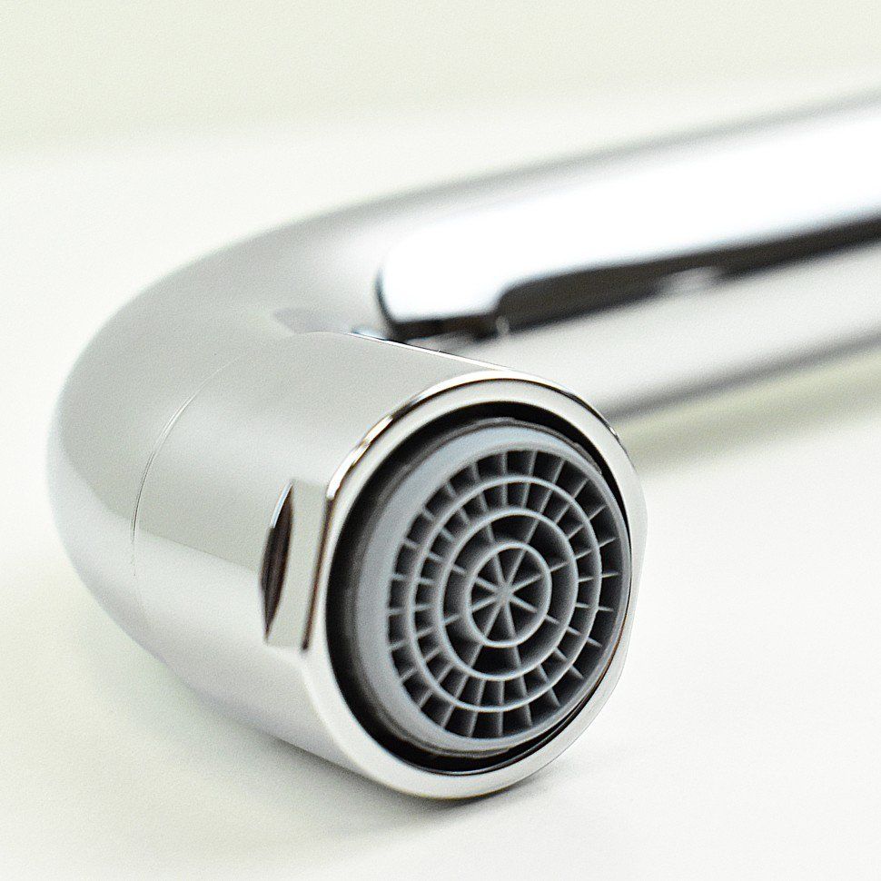 Смеситель имеет высоту излива 24.6 см и длину 19.75 см, что делает его идеальным для наполнения высоких кастрюль и глубоких раковин. Оснащен аэратором, гибкой подводкой и набором креплений, чтобы установка прошла максимально легко. В основе устройства используется керамический картридж, повышающий надежность и долговечность работы. Максимальный расход воды составляет 14 литров в минуту, однако, благодаря встроенной функции экономии воды, использование остается комфортным и экономичным.