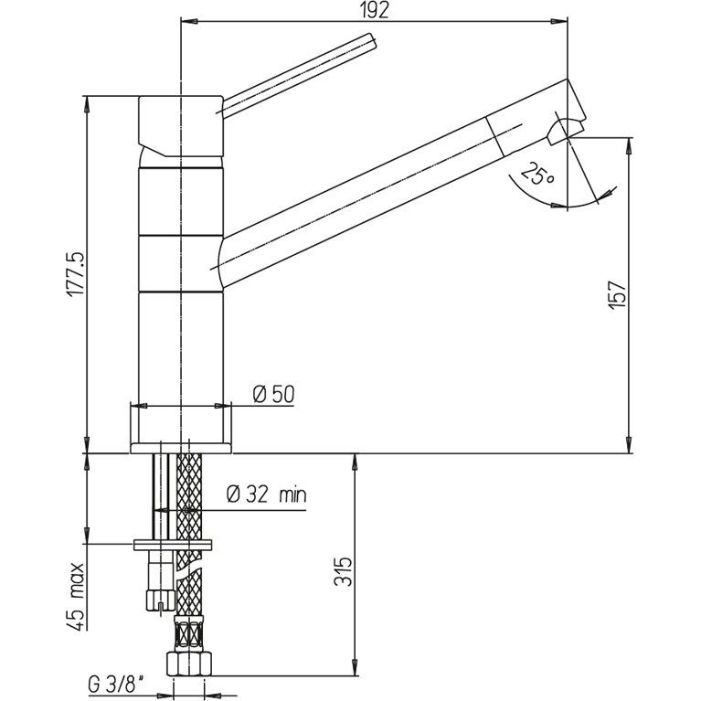 - Высота излива составляет 15.7 см, а длина — 19.2 см.