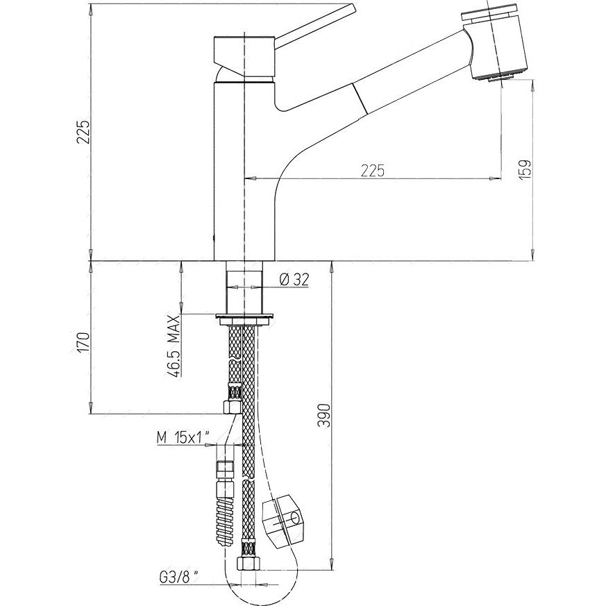 Смеситель произведен в Италии и выполнен из латуни с никель-хромовым покрытием, дополнен глянцевой поверхностью. Высота излива составляет 15.9 см, а длина — 22.5 см, что оптимально для большинства кухонь. Оснащен керамическим картриджем, аэратором, гибкой подводкой и креплениями. На устройство предоставляется гарантия сроком на 5 лет, что подтверждает его высокое качество.