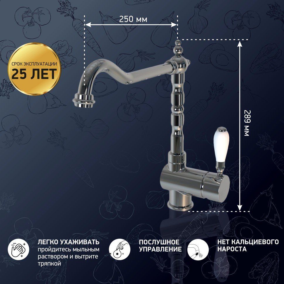 Идеальное сочетание изысканного итальянского стиля и функциональности — это смеситель для кухни Paini Cox 78CR5881ANTKM. Созданный для ваших удобств, он оснащен высоким поворотным изливом, который значительно упрощает использование глубокой посуды и позволяет легко изменять направление потока воды. Корпус смесителя выполнен из латуни с инновационной технологией двойного покрытия — никелирование и хромирование, что обеспечивает его высокий уровень защиты от ржавчины и известкового налета. Дополнительно, керамический картридж Nuovo Galatron обеспечивает легкость регулировки напора и температуры воды и гарантирует долговечность механизма. Экономичность использования достигается благодаря аэратору Neoperl, который насыщает воду кислородом, увеличивая напор и снижая расход.