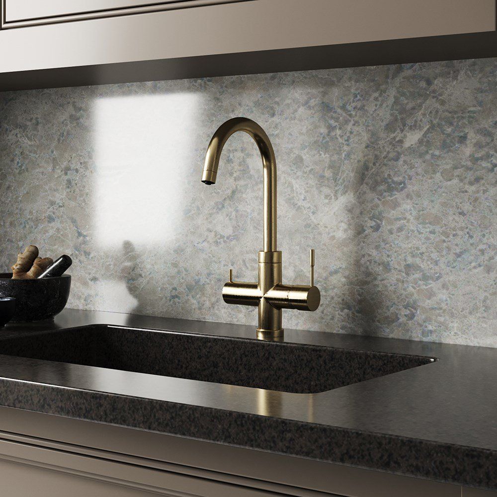 - Элегантный дизайн с матовым золотом, добавляющий кухне утончённости.
