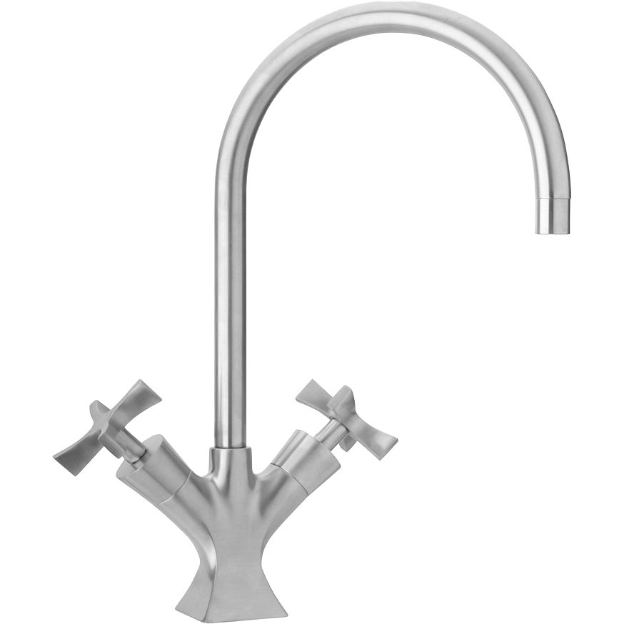 Смеситель изготовлен из латуни с глянцевой поверхностью. Высота излива составляет 21.7 см, а длина — 18.5 см, что позволяет легко наполнять высокие емкости. Оснащен аэратором, гибкой подводкой и надежными креплениями. Производится в Италии и поддерживается гарантией на 5 лет.