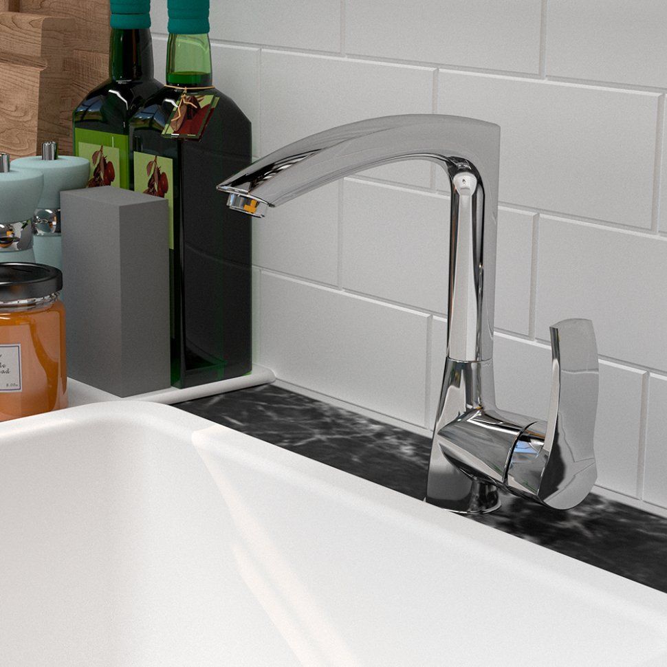 Оснащенный гибкой подводкой и всеми необходимыми креплениями, смеситель имеет высоту излива 22,5 см и длину излива 18,6 см, что подходит для большинства кухонных моек. Стильная глянцевая поверхность не только эстетична, но и практична в уходе. Аэратор уменьшает расход воды, что способствует экологичной эксплуатации.