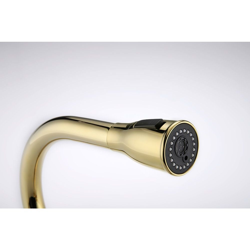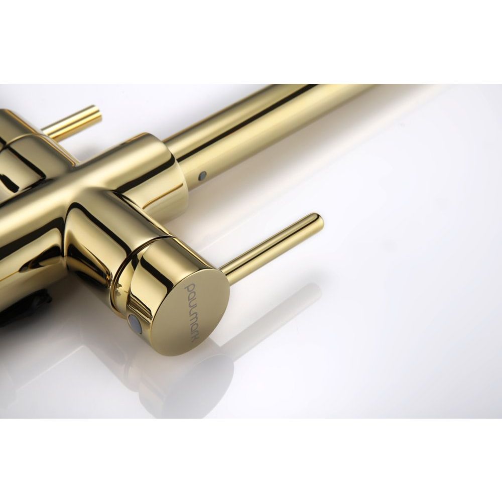 Смеситель Paulmark Lange 214212-G изготовлен из высококачественной латуни с глянцевой отделкой для долговечности и стильного вида. Высота излива составляет 21.5 см, а длина — 25 см, обеспечивая идеальный охват. Керамический картридж гарантирует мягкость и надежность управления. В комплекте присутствуют аэратор, гибкая подводка и крепления для легкой установки. Ручной выдвижной душ добавляет гибкость и удобство использования.