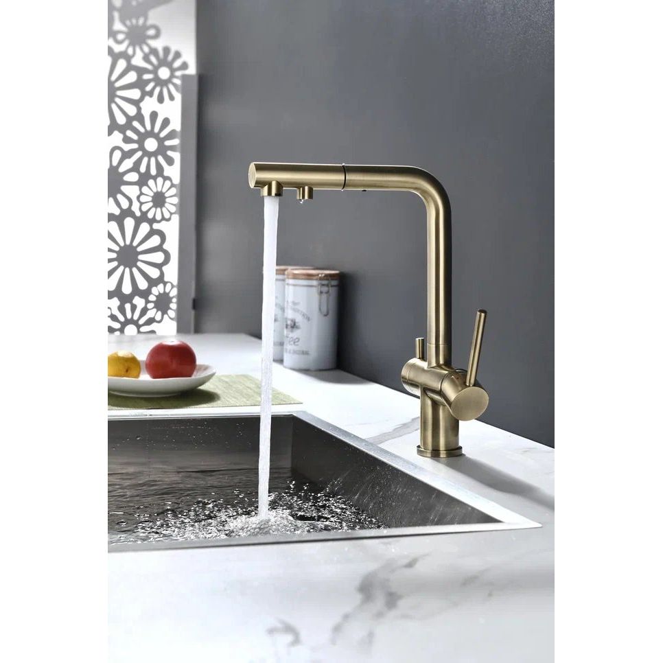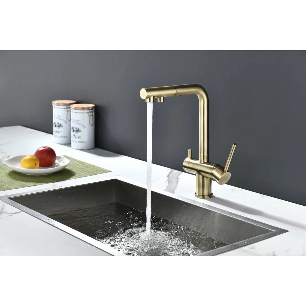 Смеситель для кухни Paulmark Serpentine Se213222-BR в изысканном бронзовом исполнении станет настоящей жемчужиной вашей кухни. Этот функциональный и стильный элемент сочетает в себе высокое немецкое качество и современную практичность. Изготовленный из долговечной латуни с брашированным покрытием, он не только порадует глаз, но и обеспечит надежную работу на долгие годы. Встроенный выдвижной излив и возможность подачи фильтрованной воды через дополнительный канал делают этот смеситель идеальным выбором для тех, кто ценит чистоту и удобство.
