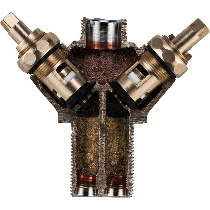 - Гладкая глянцевая поверхность, вращение маховиков керамической кран-буксой.