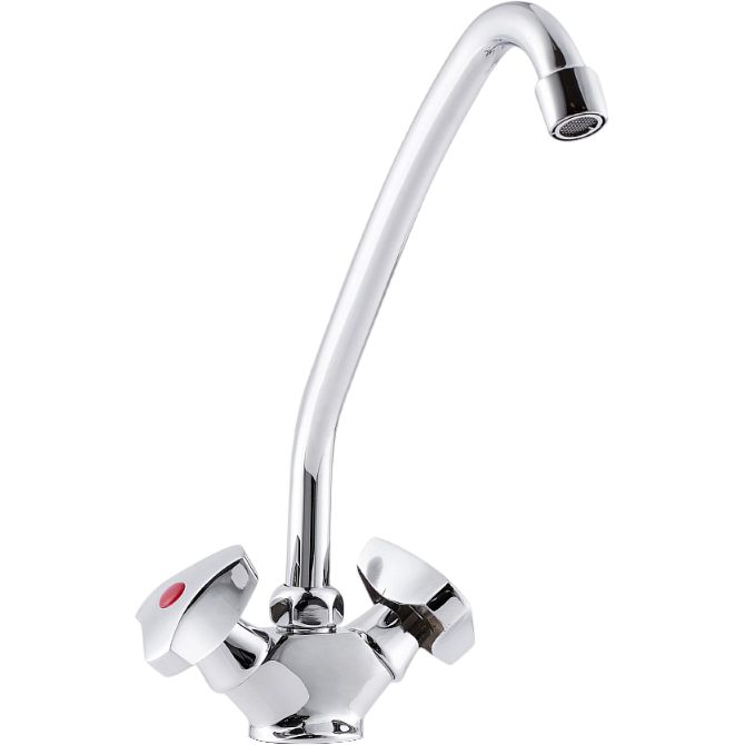 Этот смеситель изготовлен из латунного сплава, что гарантирует устойчивость к коррозии. Высота излива составляет 24 см, а длина излива — 17 см, обеспечивая удобное пользование в любой кухне. Керамическая кран-букса, применённая в конструкции, контролирует плавное и тихое вращение маховиков. Глянцевая поверхность придаёт изделиям привлекательный внешний вид и позволяет легко его чистить.
